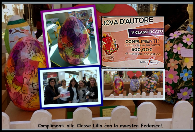 Sabato 31 marzo alle 16, alla finalissima per il concorso “Uova d’autore” al Granfiume di Fiume Veneto, l’uovo decorato dalla classe Lilla, della Scuola dell’Infanzia “Fabrici” , ha ottenuto il primo posto tra le uova più belle decorate dalle scuole del territorio. Tutte le classi, iscritte al concorso, hanno decorato le uova di polistirolo, messe a disposizione dalla Direzione del centro commerciale, dimostrando fantasia, creatività e manualità nell’utilizzare i materiali più diversi. Le uova decorate sono state esposte in galleria e le relative foto pubblicate sulla pagina fb del Granfiume dove si è scatenata una appassionata campagna per conquistarsi più like. Complimenti ai bambini ed alle maestre!